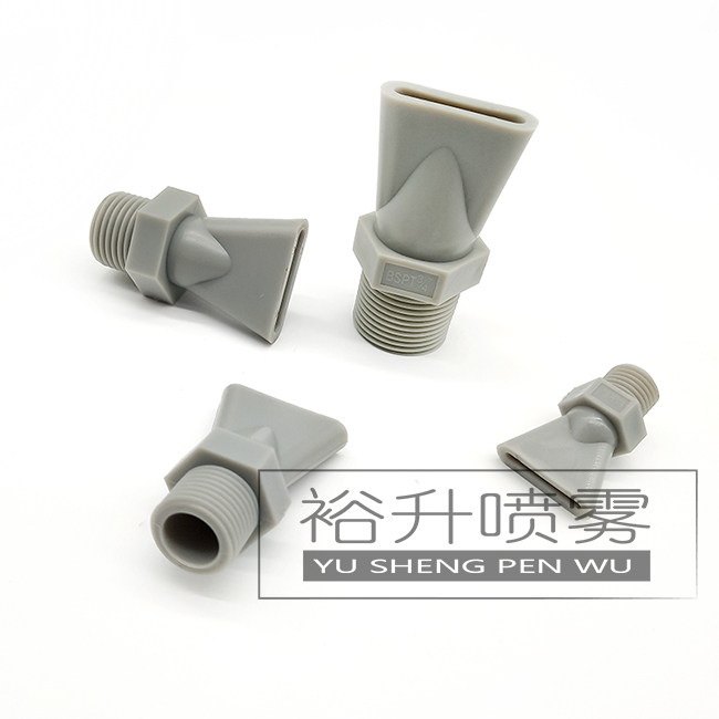 圆头式吹风喷嘴采用射出成型并结合超音波和热板溶方法使该类喷嘴并具有良好的消音、整流的优点。吹风效果明显高于传统的风刀、该类喷嘴设计有多个柱形喷射气孔空气由此吹出而形成扇形和圆形空气流、其内部结构设计呼和空气动力学原理、有效降低了运行时的气流、确保了吹风喷嘴在降低工作噪音和空气耗量的同时也能获得高气流冲力。该类喷嘴对于局部、内孔、长距离的吹扫应用比较广泛。适用于1/4英寸外螺纹连接头、并设计有定位孔(ABS喷嘴)、便于喷嘴的并排安装、其形成的组合式风刀能产生有效的空气帘。该类喷嘴一般提供ABS、铝合金或不锈钢材质制作。